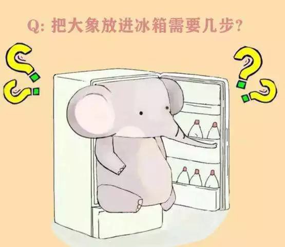 1.把冰箱打開(kāi)——2.把大象裝進(jìn)去——3.關(guān)上冰箱