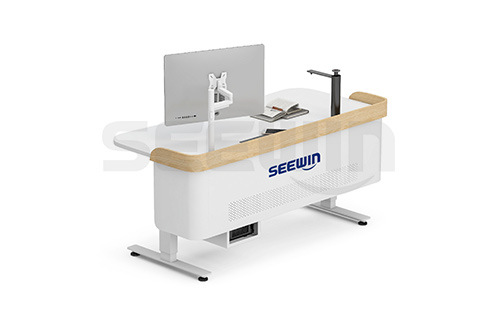 SEEWIN詩敏教學設備科威特系列教師講臺:產品臺面采用 E0 級MDF板,整體光滑且全圓角處理,一鍵電動升降,契合不同教學方式,專為多媒體教室設計,可集成中控、顯示等功能于一體,是老師課堂教學的好幫手。