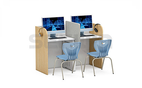 單人座位帶擋板,桌面尺寸專為電腦遠程教學(xué)設(shè)計,整體造型新穎簡潔。適合語音教室使用。