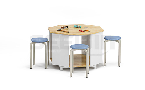 產品桌面采用橡膠木指接板,造型簡潔大方,堅固耐用,下層桌面可提供儲物空間,存放上課工具,適合