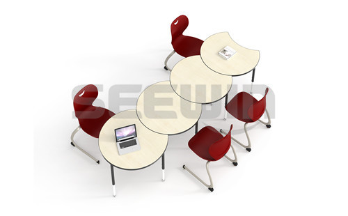 采用 E0 級(jí) MFC 板,選材健康安全。優(yōu)質(zhì)鋼架焊接,堅(jiān)固耐用。以小組為單位活動(dòng)的課程增多,組合桌椅增加互動(dòng)性,體現(xiàn)小組成員的團(tuán)結(jié)性及個(gè)體的獨(dú)立性。獨(dú)立使用和組合使用,帶有升降功能,可根據(jù)身高調(diào)節(jié)。