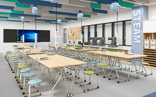桌面采用E0 級MFC板,PVC封邊,穩定耐用,為多種多樣的教學和學習模式提供簡單、高效的切換模式。可供多人培訓討論使用,具有靈活性和便捷性。