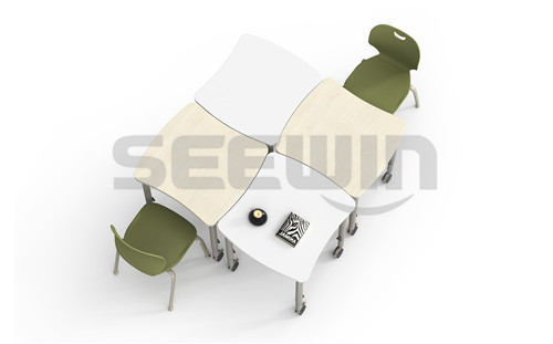 采用 E0 級 MFC 板,選材健康安全。優質鋼架焊接,堅固耐用。以小組為單位活動的課程增多,組合桌椅增加互動性,體現小組成員的團結性及個體的獨立性。獨立使用和組合使用,帶有升降功能,可根據身高調節。
