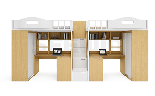 SEEWIN詩敏教學設備提亞系列宿舍床:產品采用環保 E0 級 MFC 板材,健康安全,結構堅固、經久耐用。產品配置書柜、書桌,給學生提供獨