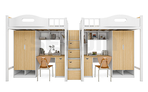 產(chǎn)品采用環(huán)保型 E0 級 MFC 板,選用優(yōu)質(zhì) DTC 五金配件。棱角倒圓處理,弧形轉(zhuǎn)角防止磕碰,邊緣光滑不刺手。床側(cè)帶有儲物空間,床底可選配抽屜,進(jìn)一步滿足儲物需要。柔和配色可供選擇,陪伴學(xué)生安心入睡。