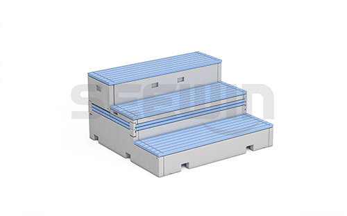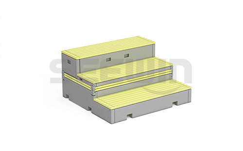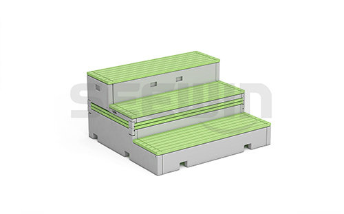 產(chǎn)品采用高密度聚乙烯mm(HDPE)為原料,中空吹塑工藝制作。中空配件側(cè)面設(shè)計(jì)內(nèi)陷抓手,底下有站腳,后面配有腳輪mm(方便移動mm), 保護(hù)地面的同時(shí),滿足使用方便的要求;臺面多條帶防滑點(diǎn)的防滑條,顏色可以選擇,滿足樂感俏皮的設(shè)計(jì)。